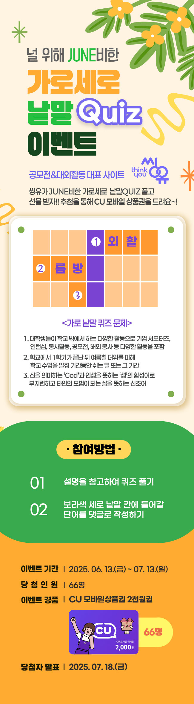 [씽유] 널 위해 JUNE비한 가로세로 낱말 QUIZ 이벤트