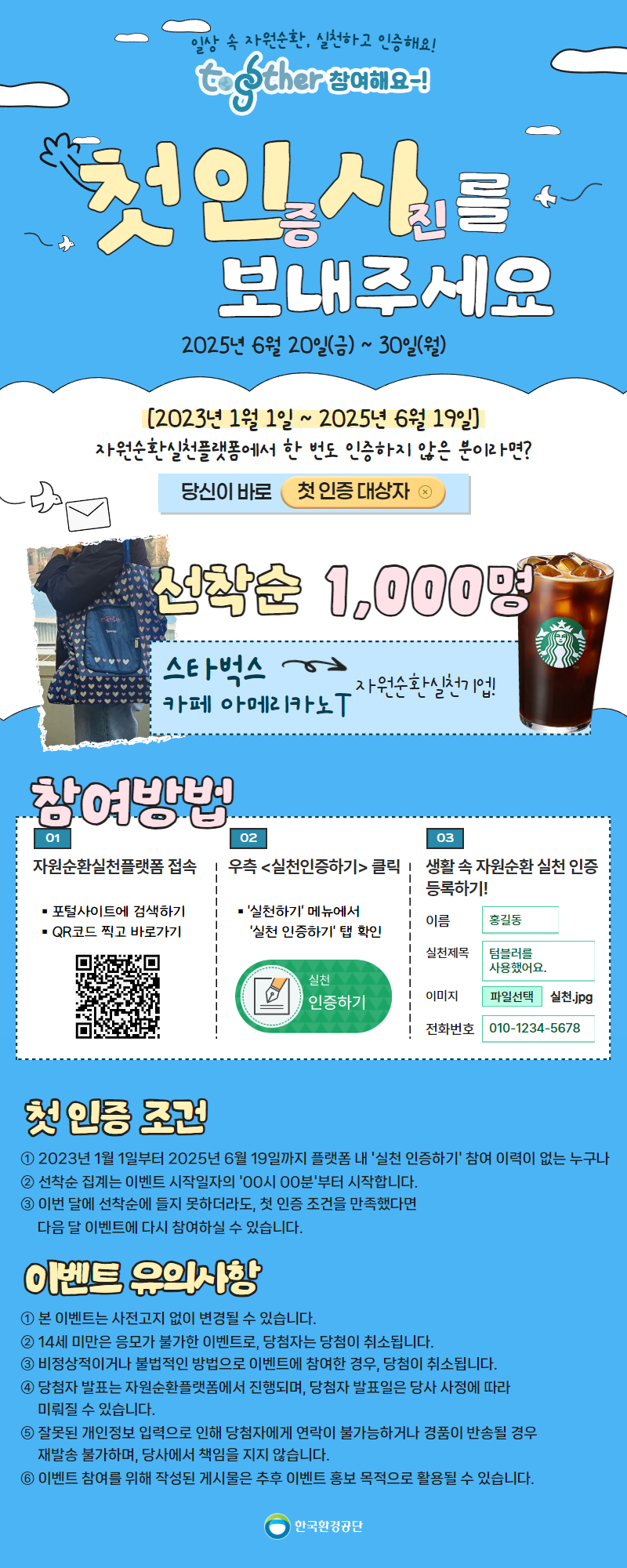[선착순] 첫인사 챌린지: 일상 속 자원순환, 실천하고 인증해요!(25.6.20~6.30)