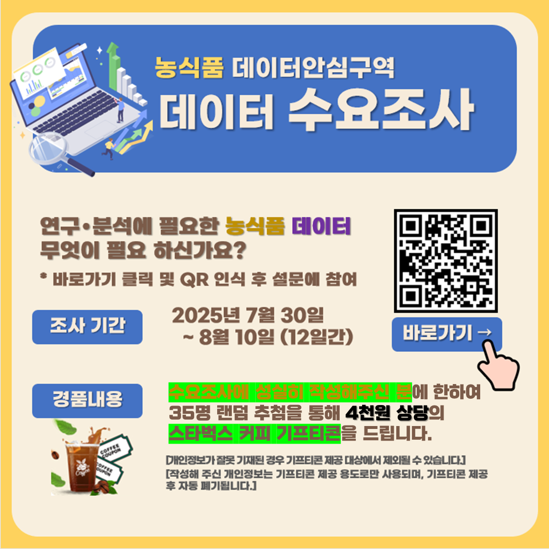 [농정원]2025년 농식품 데이터안심구역 데이터발굴 수요조사 이벤트(커피 기프티콘)
