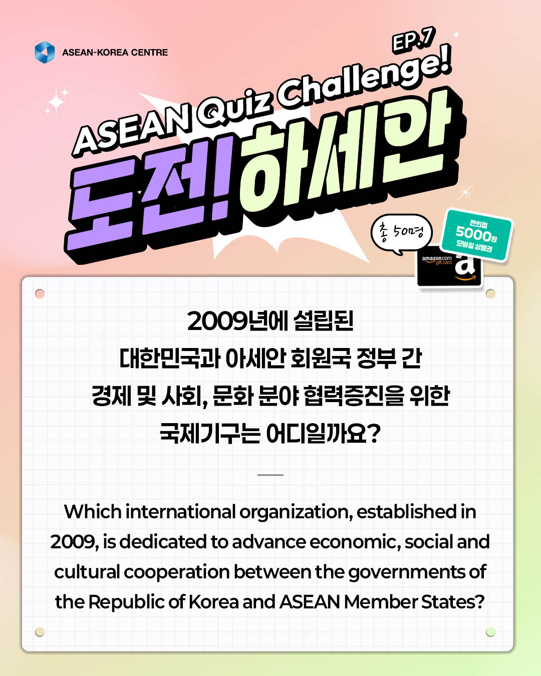 문제: 2009년에 설립된 대한민국과 아세안 회원국 정부 간 경제 및 사회, 문화 분야 협력증진을 위한 국제기구는 어디일까요?