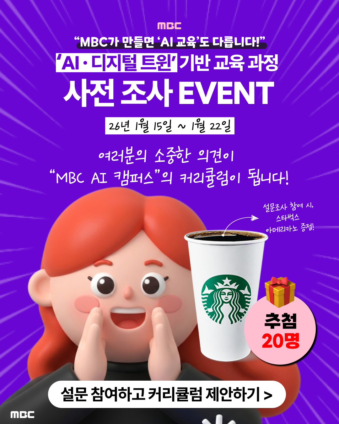 MBC 'AI·디지털 트윈 아카데미' 교육생 모집 설문조사 (feat. 스벅아메증정 EVENT)