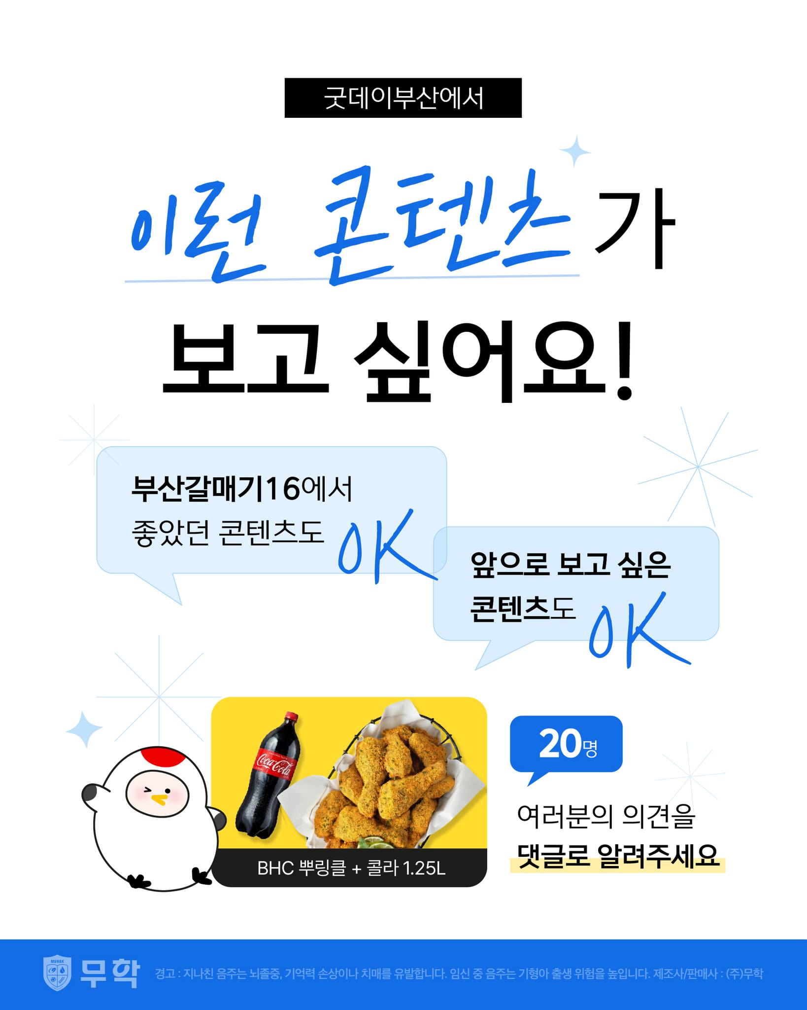 [D-2] BHC 뿌링클 치킨을 받을 수 있는 기회! 굿데이부산에서 보고싶은 콘텐츠를 남겨주세요⭐