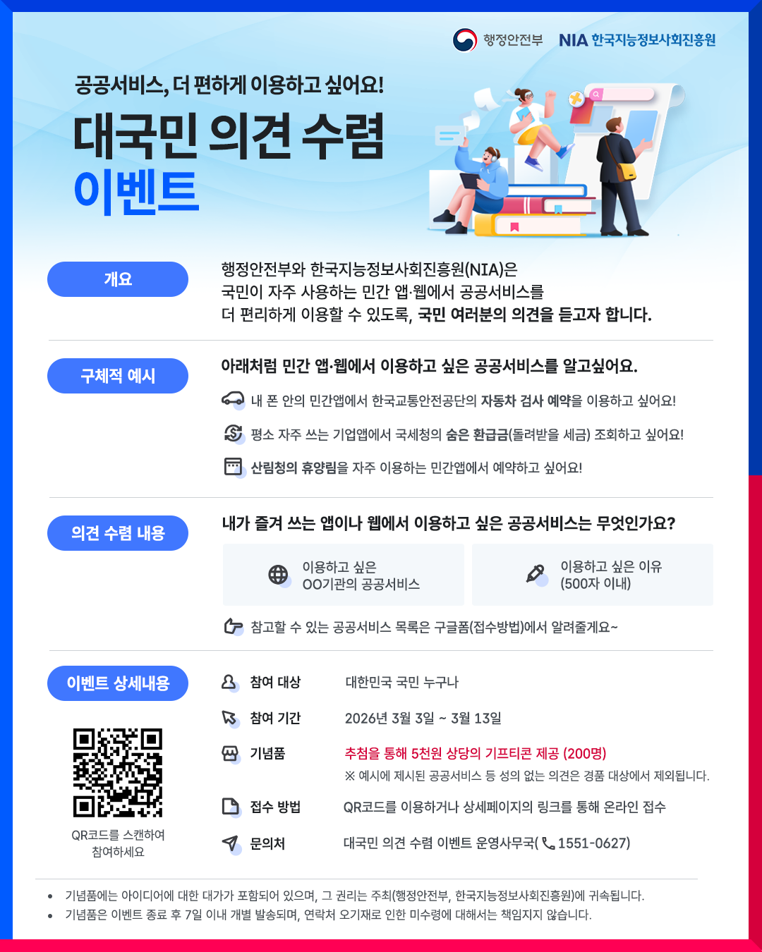 공공서비스, 더 편하게 이용하고 싶어요! 대국민 의견 수렴 이벤트