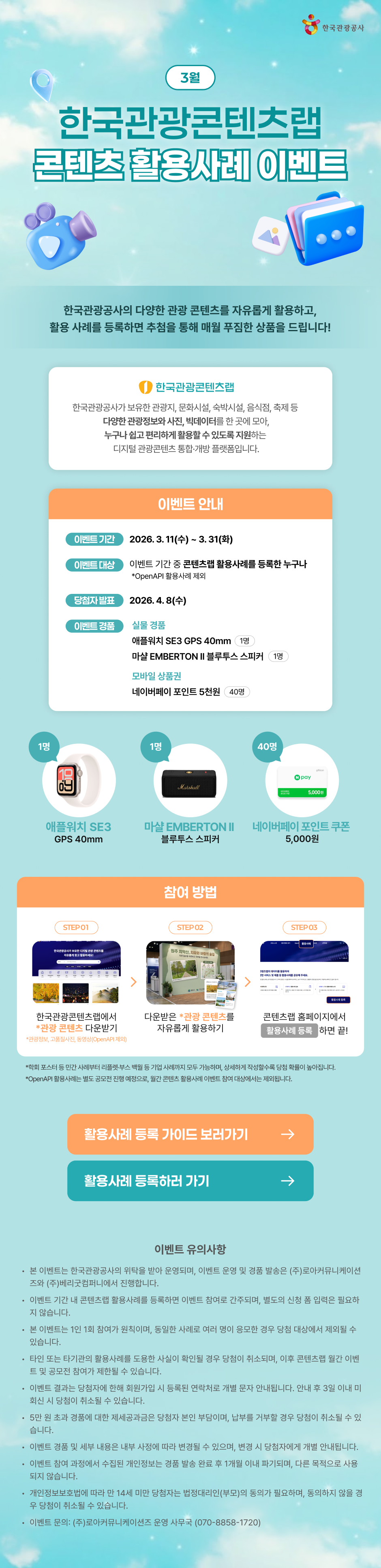 한국관광콘텐츠랩 콘텐츠 활용사례 3월 이벤트