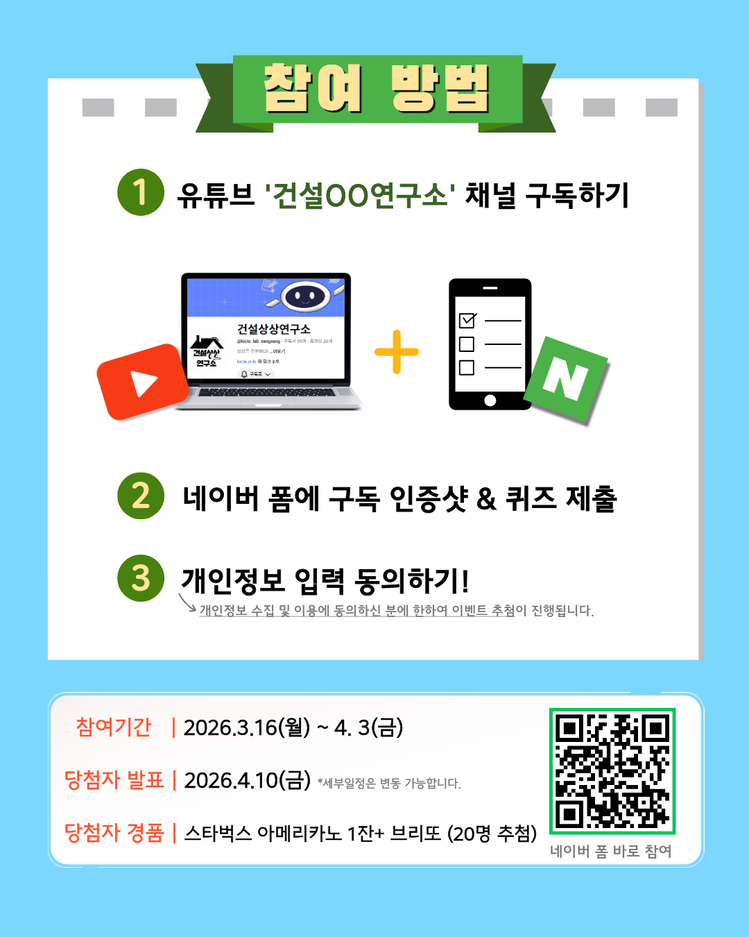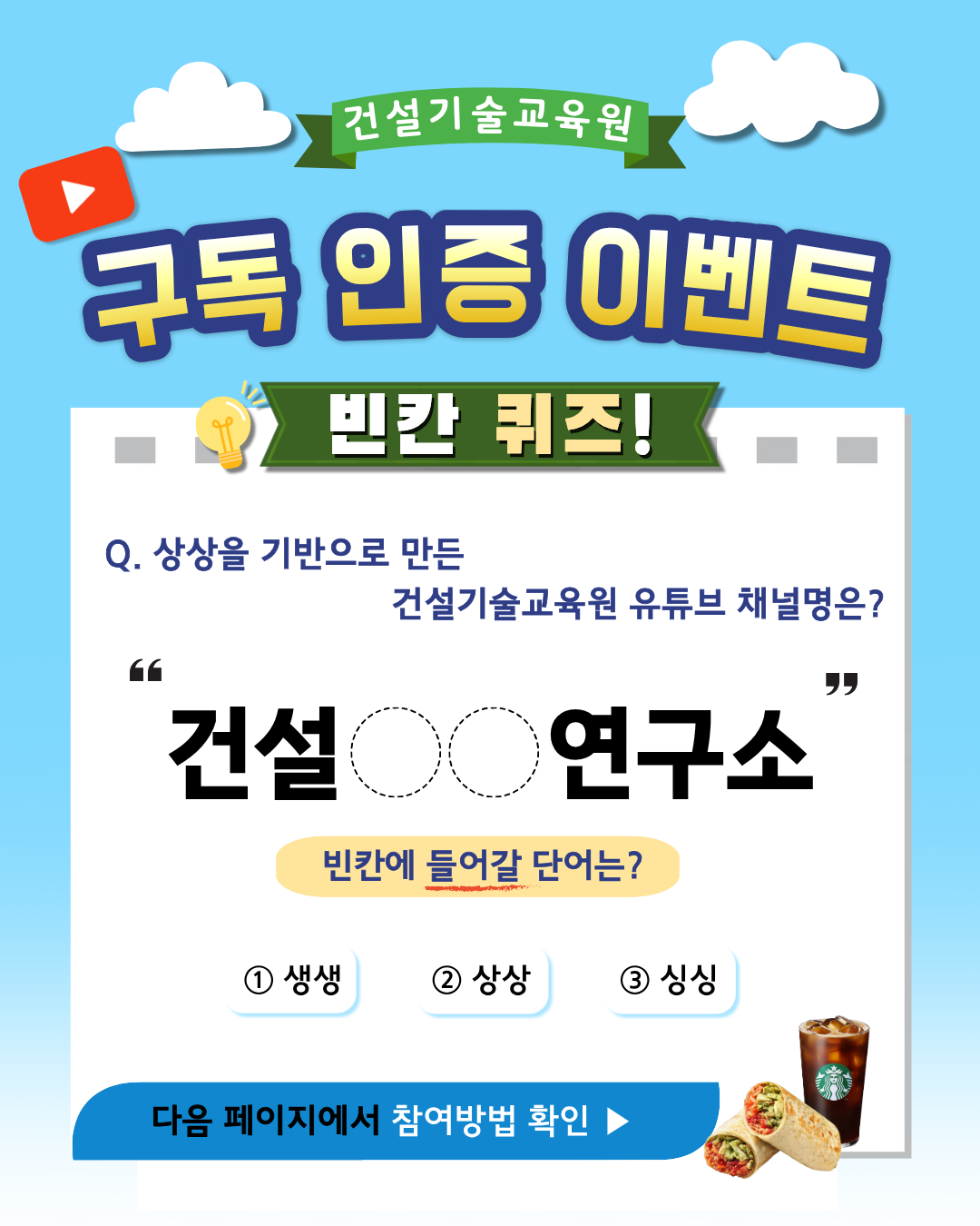 건설OO연구소 유튜브 구독 이벤트 | 퀴즈 맞히고 스타벅스 커피 받자!