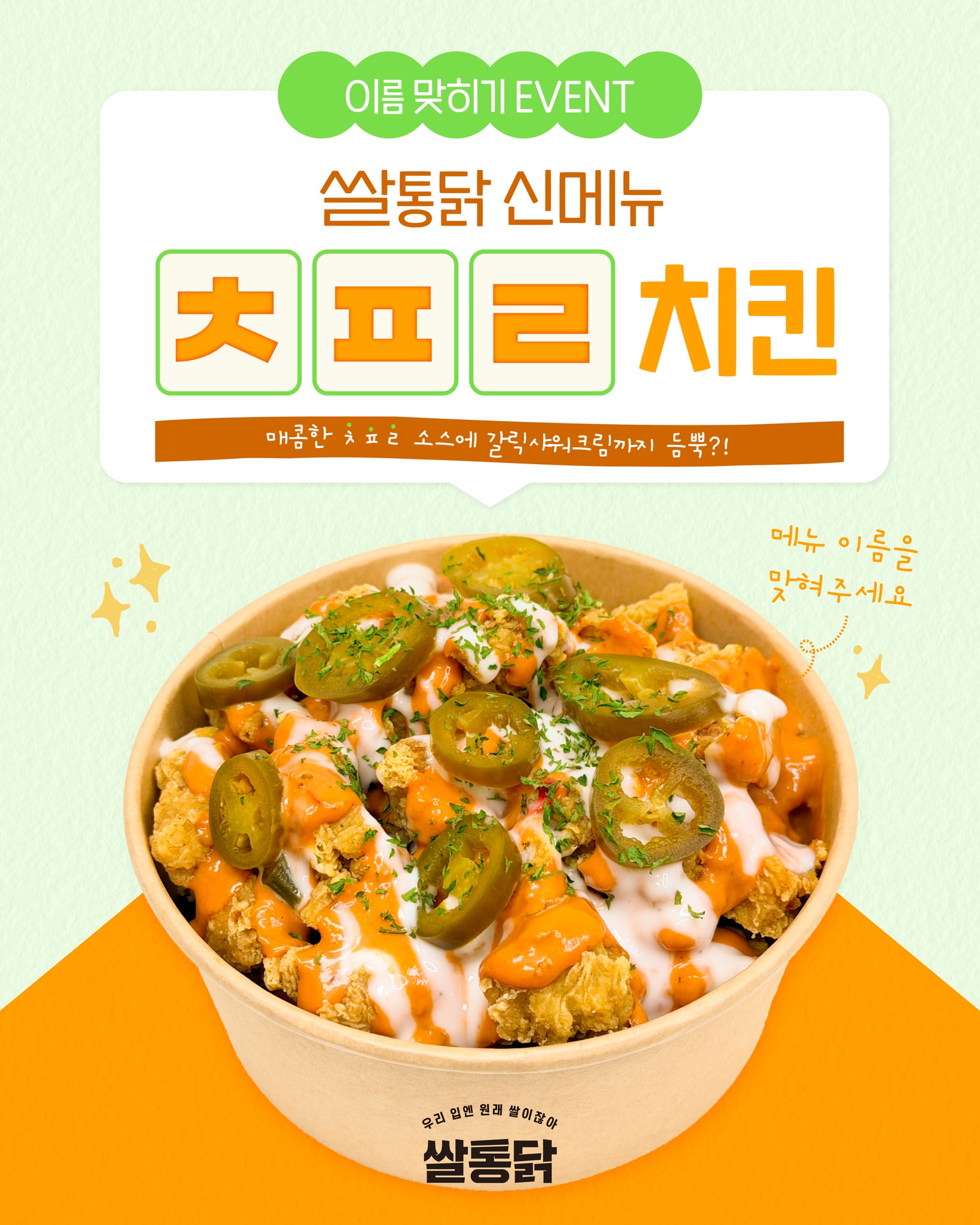 쌀통닭 ㅊㅍㄹ 치킨 출시 신메뉴 이름 남기고 치킨 받기 이벤트